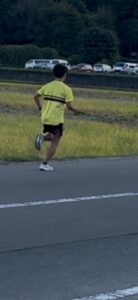 上半身がやや前方へ倒れていたのが起きてきて、反発を活かした走りに変わってました。