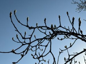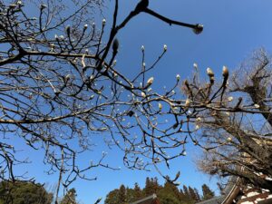 永保寺境内では、いつも3月頃白い花を咲かせてくれるハクモクレンの蕾が、枝先に顔を出していました。