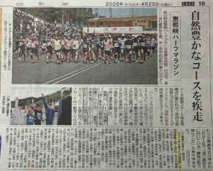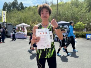 4/19(日)恵那峡ハーフマラソン大会の一般男子30歳未満の部で3位に入賞した志知海優選手(20才)。
